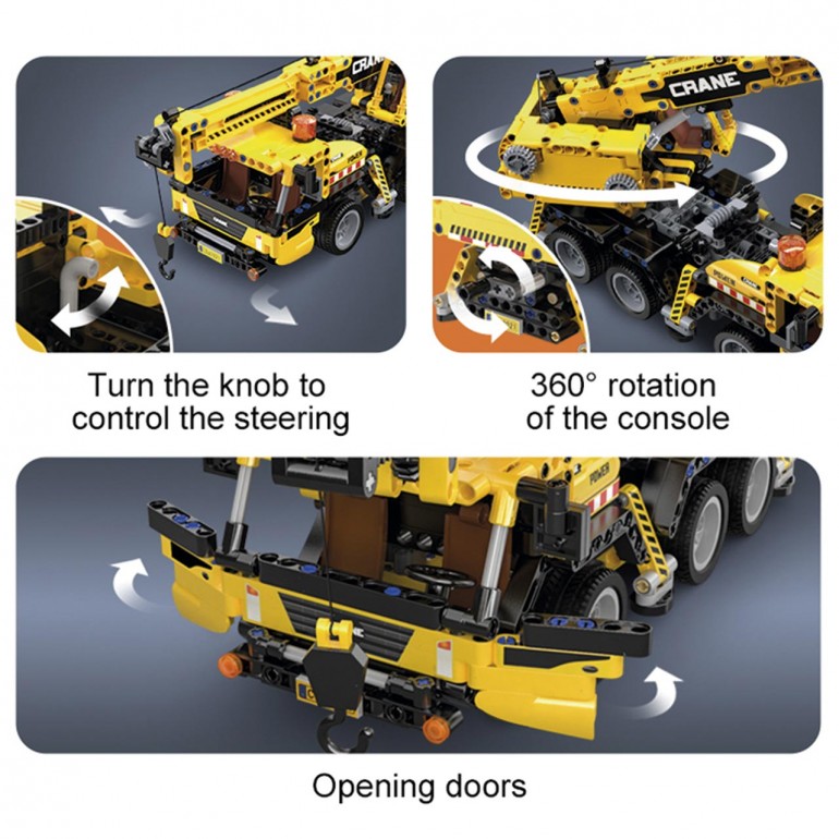 This set is ideal for children who are passionate about construction vehicles. This kit model is a fully functional unit with drive/steering, working stabilizers and boom mechanism that rotates when you move it. This model is also equipped with a boom and a hook mechanism that can be lowered for easy lifting. CaDA construction machinery fleet games are the perfect way for children to learn and develop self-confidence while building.
