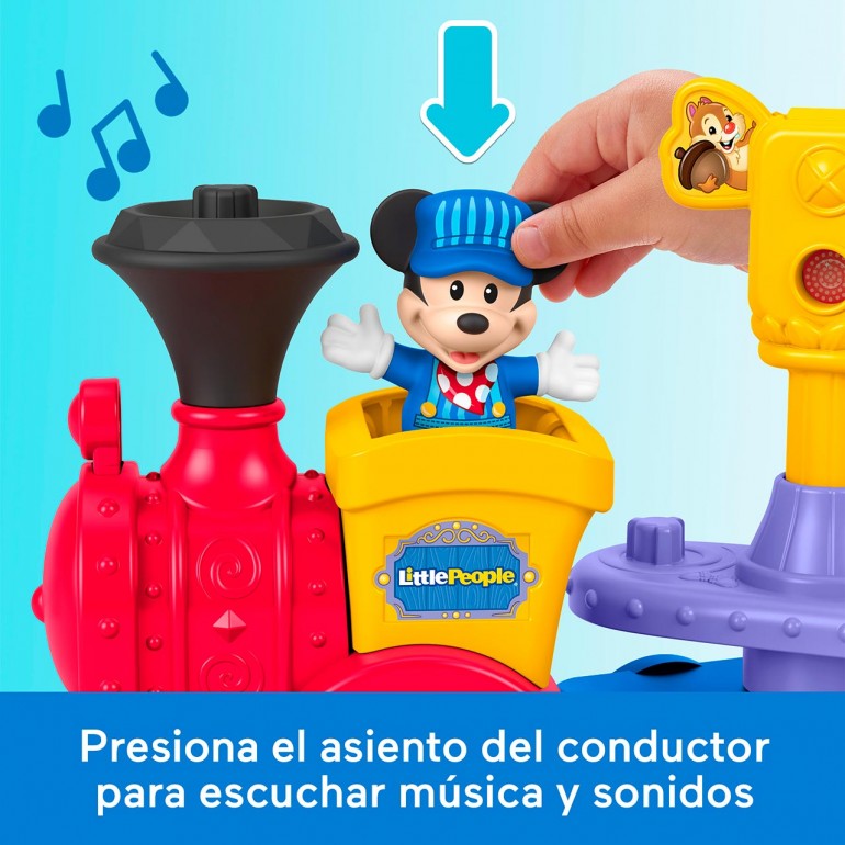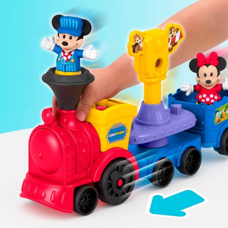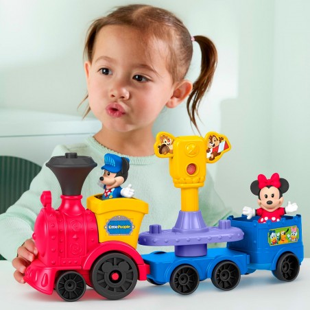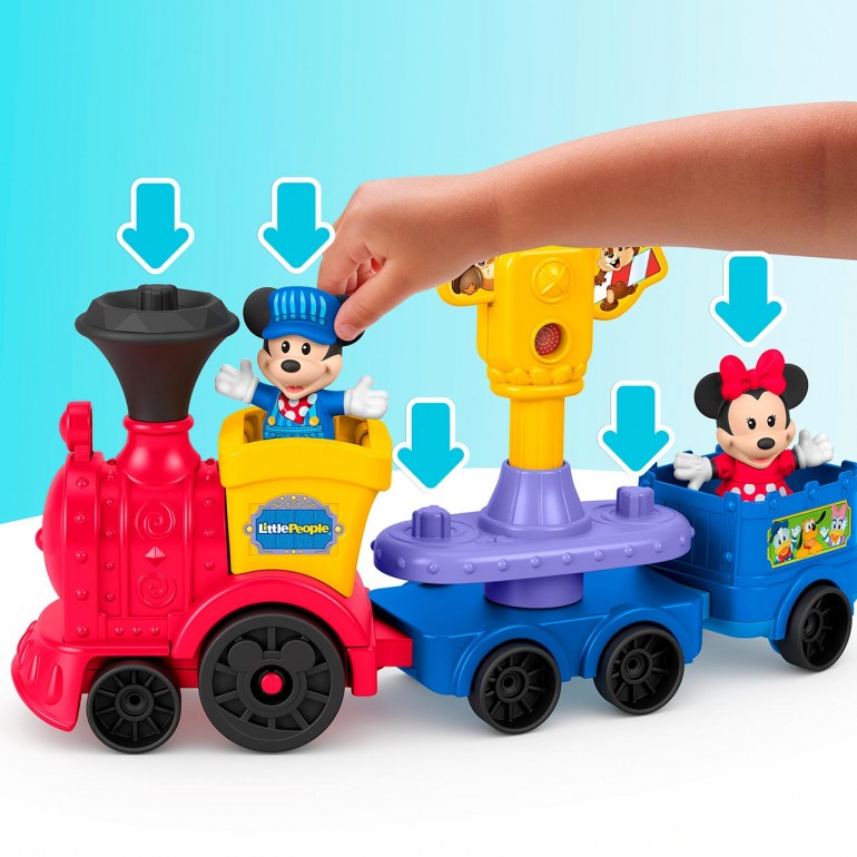 Little ones can imagine endless adventures with their favorite DISNEY Jr. Mickey and Minnie Mouse friends with this musical toy train from Fisher-Price´s Little People range. This push-along toy train features fun music and sounds, a passenger car with swivel seats, a pop-up traffic light and 2 Little People figures of DISNEY Jr. characters Mickey and Minnie. Boys and girls will love taking Mickey and Minnie on all kinds of musical journeys! Look for more Little People figures featuring DISNEY Jr. characters to take along on the Mickey and Minnie Musical Train for even more playtime fun!