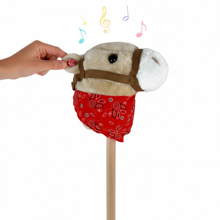 Stuffed horse head with stick and sounds. Three different colors: brown, black and white. They are sold separately.