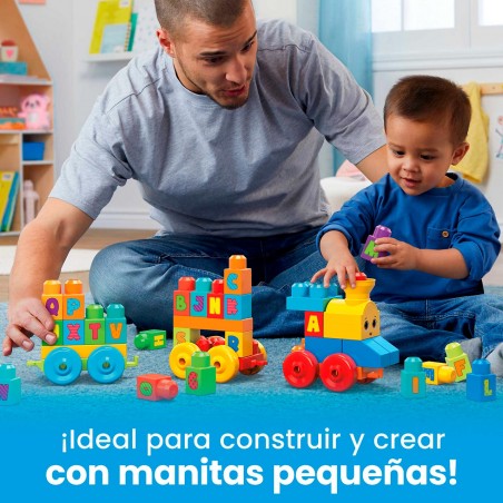 Engine driver will learn the letters as he builds a musical train with the letters A to Z! Connect the three wheeled bases together and stack the letter blocks on top to learn the alphabet or even build whole words. Then, open the train´s chimney and discover realistic sounds and songs.
