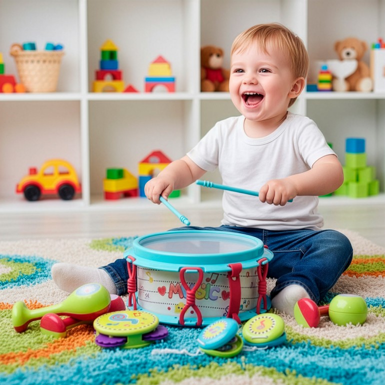 Musical set for the little ones that includes a drum, a set of maracas, a set of castanets and a tambourine with fun colors. It is perfect for the auditory stimulation of the youngest children. Designed for children from 2 years old.