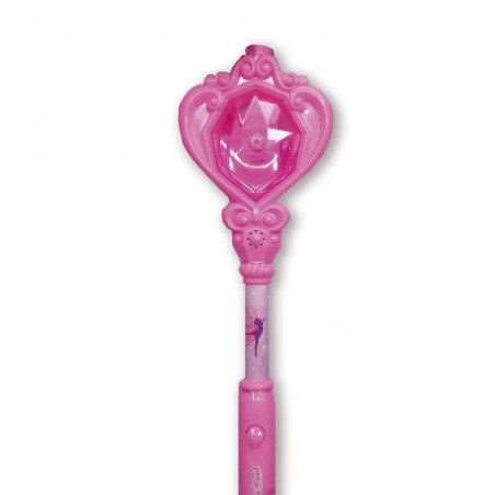 Magic wand with light and sound. By pressing the button the wand lights up and emits melodies. Fun and different, this wand will make wishes come true while children play princesses and stories. It works with batteries that are included. Recommended from 3 years.