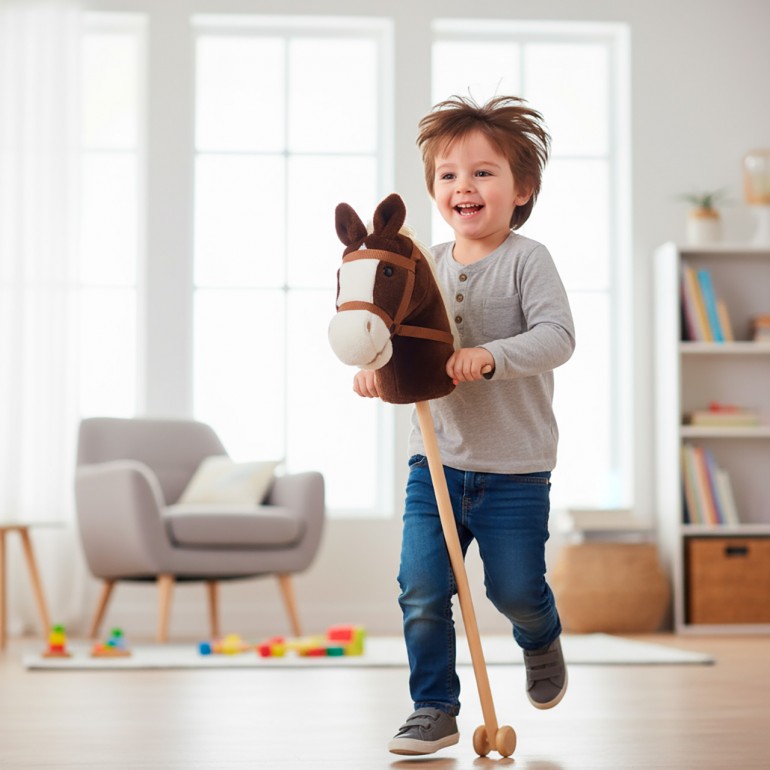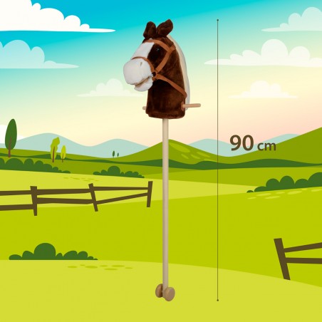 Stuffed horse head with stick and premium sounds. It measures 90cm and has two wheels in the lower part to favor sliding. In addition, the horses have leather muzzles for a better grip. Recommended for people over 3 years old.