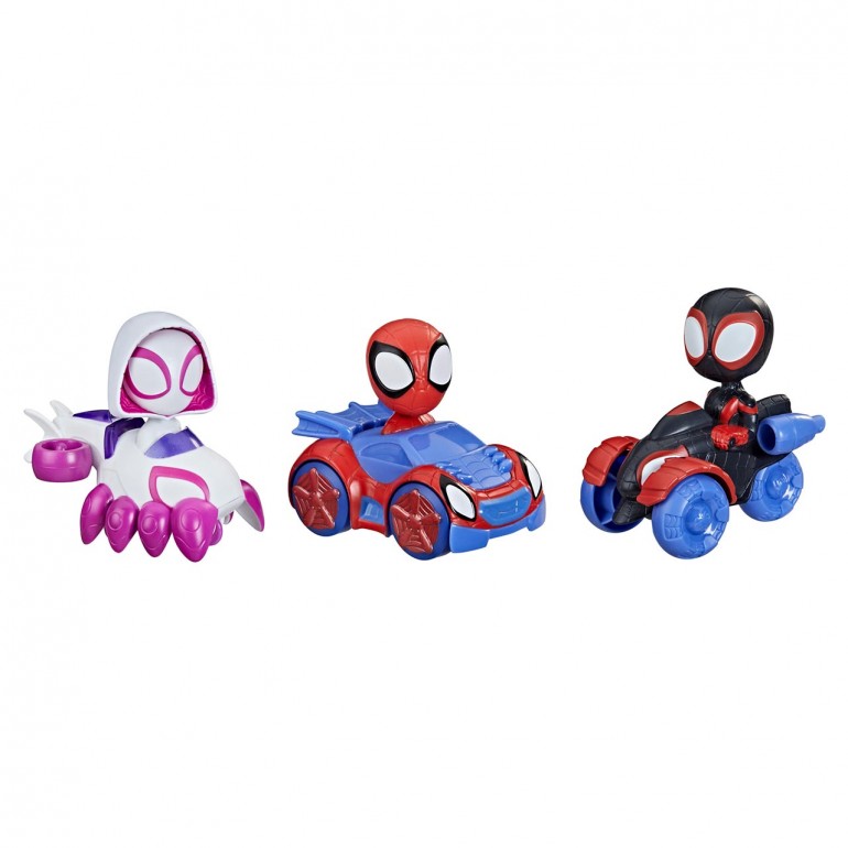 Enjoy 3 iconic Marvel characters in Web Squad racing vehicles! Kids will love playing with these characters inspired by the popular Marvel animated show on Disney Jr. Each 3-inch scale Spidey and His Amazing Friends Web Squad Racers included in this 3-pack has working wheels, perfect for rolling to the rescue.