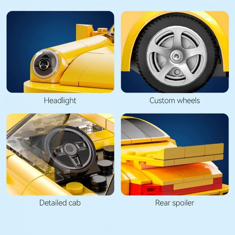 Replica licenciada de RUF en color amarillo. El vehículo puede ser controlado por el control remoto de 2.4GHZ y la aplicación Bluetooth, disponible en versiones Android e IOS. Disfruta de tus turnos con los 4 modos de conducción que te ofrece la App de CADA (giroscopio, scratch de programación, control desde tu móvil o editar tu propia ruta).