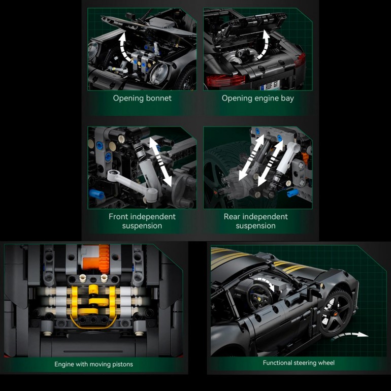 Replica del Ruf GT en color negro mate. Dispone de 1655 piezas que dotan al coche de todo lujo de detalles.