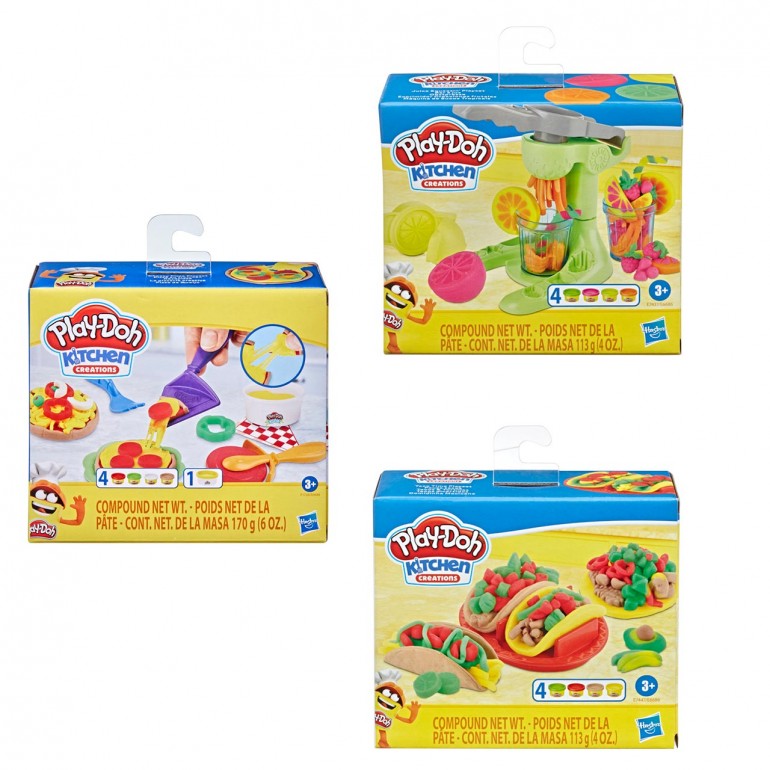 With these kitchen sets, little cooks can imagine, create and serve the most incredible dishes made with Play-Doh. Each set contains tools and accessories, as well as 4 cans of colorful modeling clay.