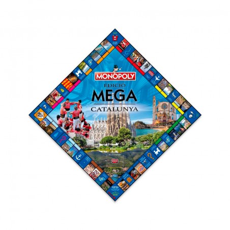 Discover MONOPOLY Mega: Catalonia Regional Edition, more properties, more money, Mega cards and the possibility to build skyscrapers. For 2-6 people. A more dynamic and challenging version of the classic Monopoly. Includes 1 board, 2 instructions, 2 decks of 48 cards (16 Community, 16 Luck, 16 Bus Ticket), 2 decks of 37 cards, 290 bank bills, 8 counters, 1 token, 2 dice, 1 speed die, 32 houses, 12 hotels, 4 stations and 8 skyscrapers.