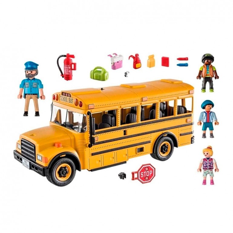 What fun it is to go to school with the school bus! It has 46 pieces, including the bus, 3 figures and a bus driver. Accessories include backpacks, a lunch bag, pencils, a fire extinguisher, a notebook and a stop sign. With this toy, children can invent various scenarios: taking children to school, picking them up and taking them home.