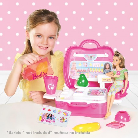 The Barbie Smoothie Case includes everything you need to make a healthy smoothie. It includes more than 20 accessories with which you can simulate the creation and purchase of a smoothie for you and another that you can share with your Barbie thanks to the seat included for her in the case.