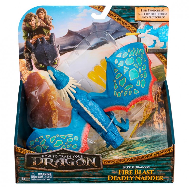 Step into the universe of How to Train Your Dragon with the Dragons of Battle: Deadly Nader Fire Thrower action figure. This figure features a design just like the movie and articulated wings and legs, so kids can recreate their favorite scenes from the movie or make up other stories. Place the fire blast accessory in Nader Death Eater´s mouth and press the button on the back to launch it. This dragon just has to flap his wings to take kids on epic adventures full of bravery and heroism.