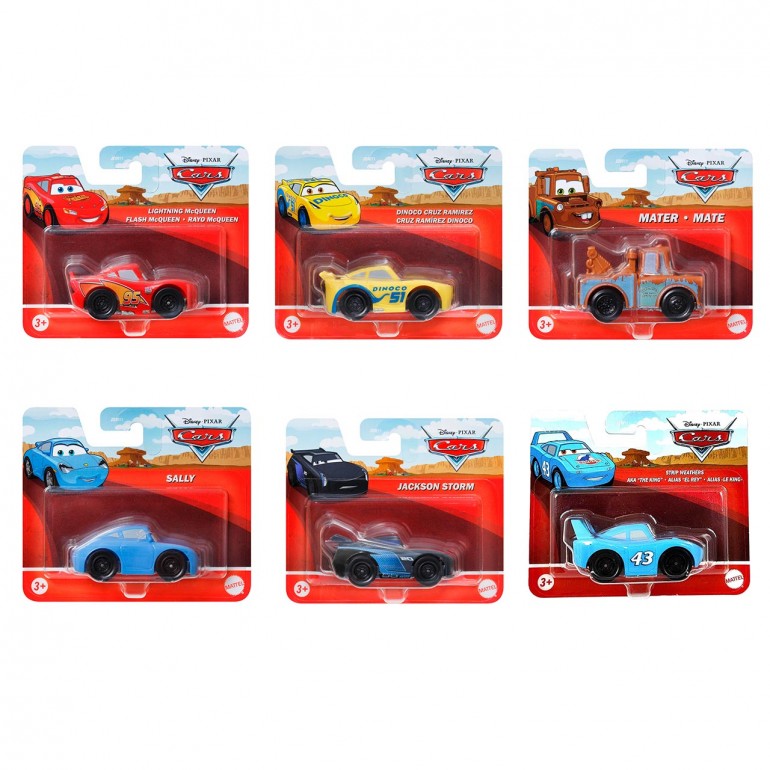 Launch into Cars adventures with these toy cars inspired by your favorite characters! Each die-cast vehicle is designed in 1:55 scale with spinning wheels to take you on any adventure. Find Lightning McQueen, Mate or Sally, and collect them all.