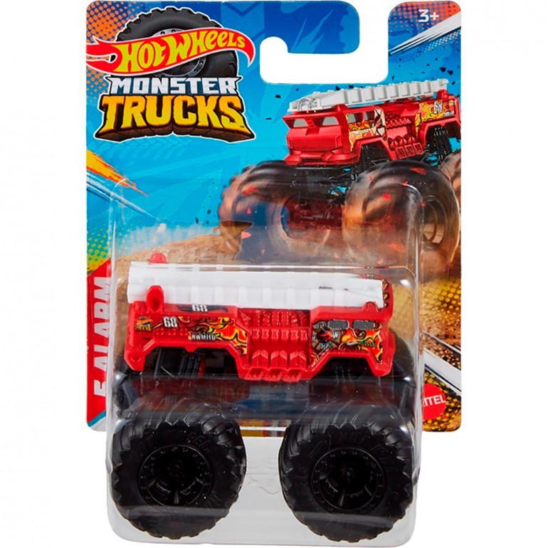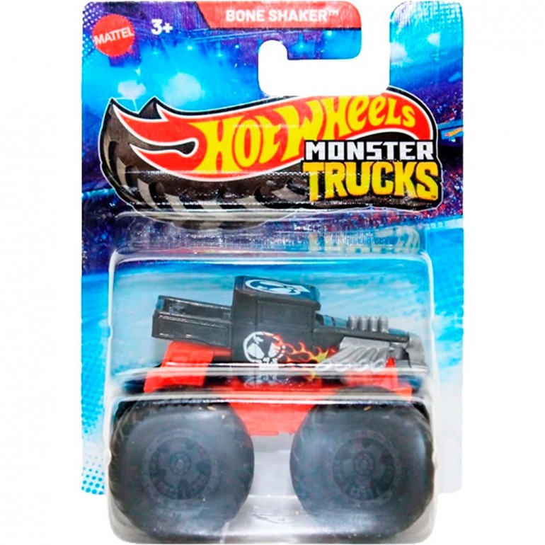 Hot Wheels 1:70 scale Monster Trucks offer wrecking action in a small package. Each toy truck has giant wheels that kids love. The collection includes fan-favorite characters like Race Ace, 5 Alarm or Bone Shaker all fully sculpted and decoratively detailed.