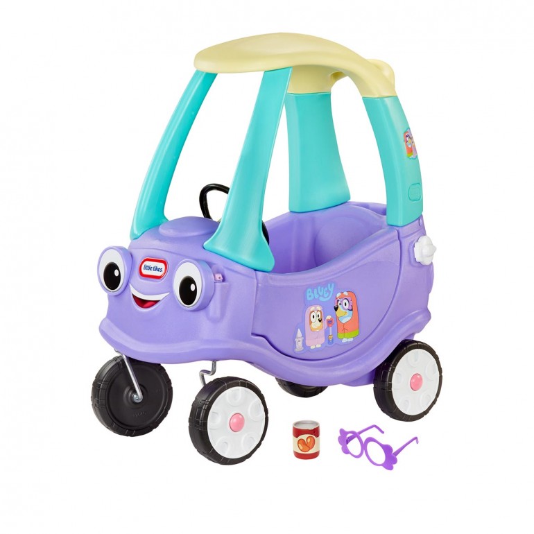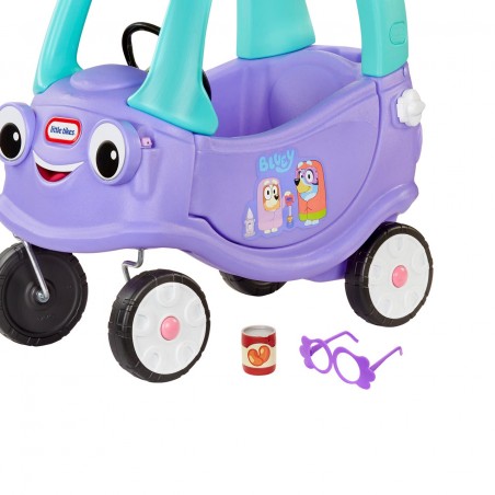 A fun version of the Little Tikes Cozy Coupe, this Bluey-themed ride-on is sure to be your little one´s favorite. When you honk the horn you hear nine Bluey phrases. The car is decorated with adorable Bluey decals and includes a pair of granny glasses and a can of baked beans, a Bluey classic!