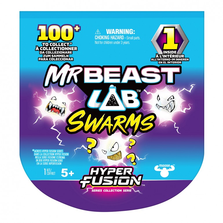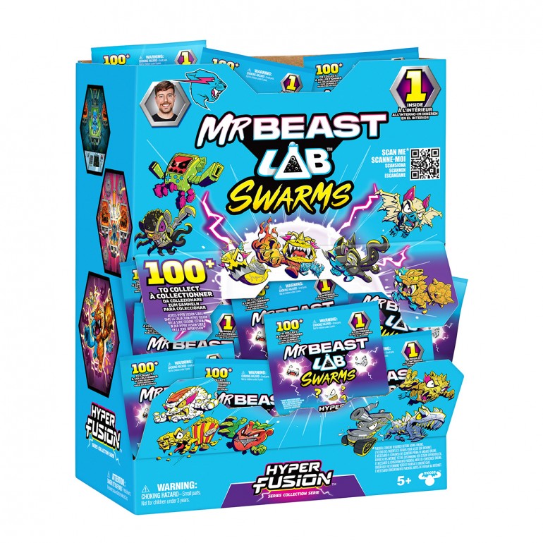 Introducing the NEW MrBeast Lab Swarms! In a surprise pack, these figures are part of the hyperfusion series with over 100 to collect - get ready for 9 all-NEW teams! each team one with unique fusion-themed designs and new special finishes. Don´t miss out on the quest for the ultra-rare limited edition figure: only 1000 are available.