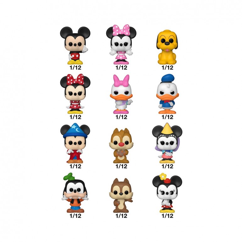 Expand your collection with this box of 36 Disney Bitty Pop! figures, featuring iconic characters like Mickey Mouse, Minnie Mouse, Goofy and more. Each figure comes in surprise packaging and measures approximately 2.3 cm, ideal for displaying or trading.