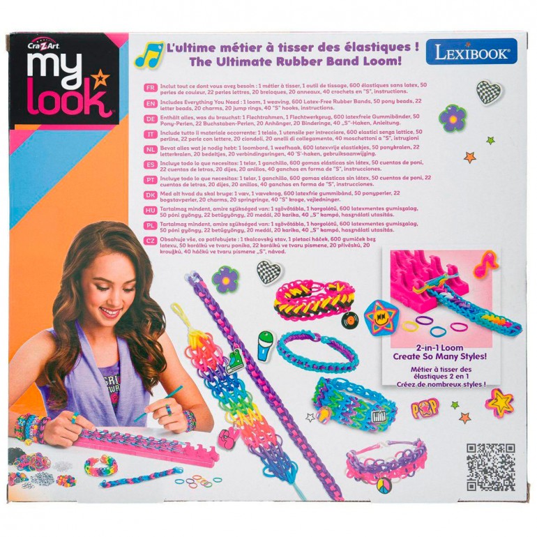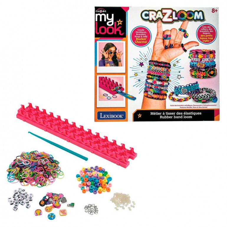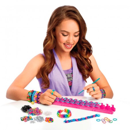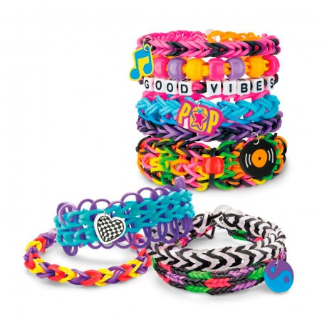 Get rockin´ with these cool tour-themed rubber bands and letter beads! Featuring metallic, neon and luminous bands. Create necklaces, bracelets and rings, and decorate them with the included rock charms.
