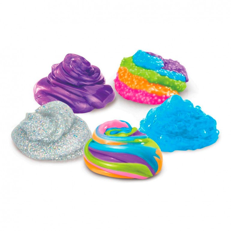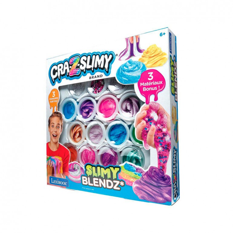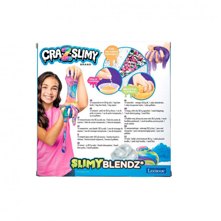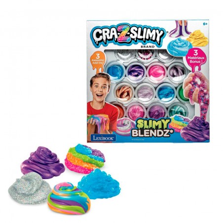 Slimy Blendz slime set combines the sparkle of sequins, the texture of foam and clear beads. Featuring 12 cans of pre-made slime in a rainbow of colors including gold, pink, purple, green, bright green, shiny green, dark blue, silver, yellow, gray, violet, orange and light blue - don´t just imagine what you can do, make it happen with this Slimy Blendz set!