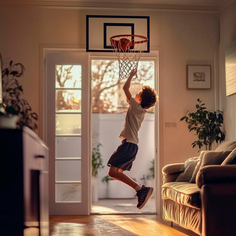 Make it possible to play basketball anywhere with this portable basketball hoop. Practical and easy to set up, this portable basketball basket offers hours of sporting fun for budding young players. This basketball basket is designed to hang easily in a variety of locations. Whether it´s on a door, a wall or even the back of a chair, simply attach it securely with the included iron hooks or adhesive hooks and you can start playing right away.