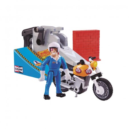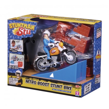 Launch yourself at full speed with Stuntman Stu´s stunt bike! Use the included ramp to take off and recreate the wildest stunts - stomp your feet and fly!