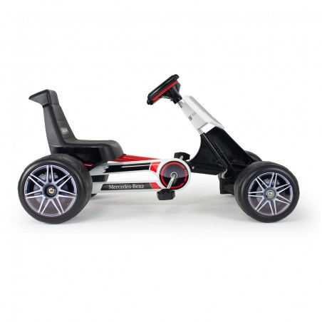 The Mercedes Benz Go Kart is a pedal-powered vehicle designed for young children that combines a sporty design with the renowned quality of the Spanish brand Injusa. Officially licensed by Mercedes Benz, this children´s go kart offers a fun, safe and educational driving experience, ideal for outdoor play and the development of motor skills from an early age.