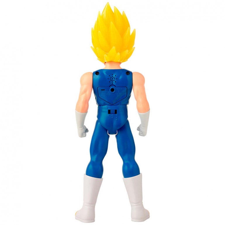 Incredible figure of Vegeta Super Saiyan. 30 cm tall and for the first time with lights and sounds! Squeeze his belt and you will see how he transforms into Super Saiyan and his hair lights up. With motion sensors that activate incredible sounds when he hits with his fists or feet.