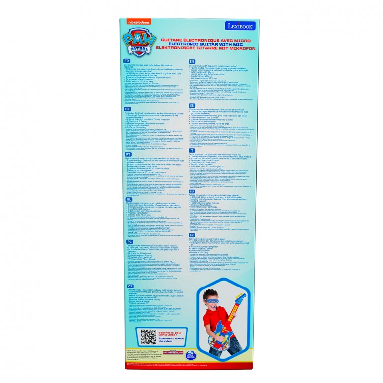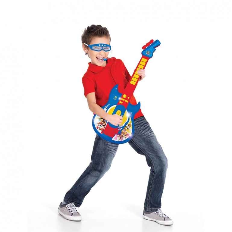 A magnificent electronic guitar and Paw Patrol glasses with microphone. 2 playing modes: solos or own melodies. Light effects. Central bar and demo tunes. Goggles with microphone included.