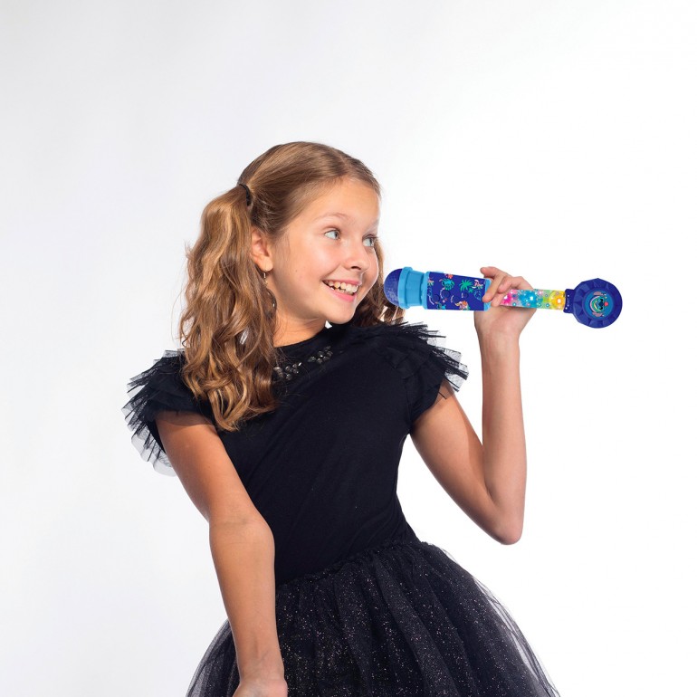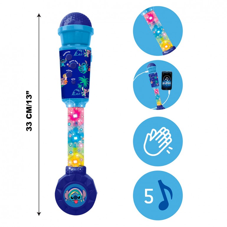 Sing along with your child with this adorable microphone with multicolored lights. With built-in songs and auxiliary connection for compatible devices, you can effortlessly practice singing and prepare for your next performance. Get motivated with the applause mode, which encourages you to sing along.