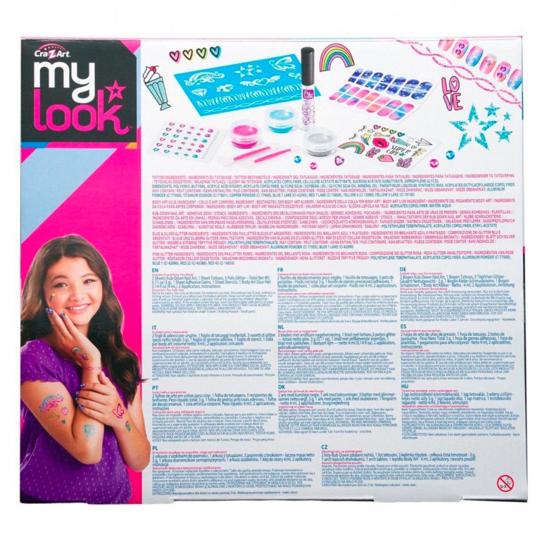 The Shimmer ´N Sparkle glitter nail and tattoo set is the perfect birthday gift and will delight for hours with your friends. Create your own nail style by using the stickers and adding sparkly gems and glitter to the pink, blue and purple stickers. Use the included nail glue to attach the gems to the stickers. When your nails are ready, add a touch of sparkle to your look by creating body tattoos. Choose a design from the included sheet and use the pink, purple and aquamarine glitter to create a design from the template.