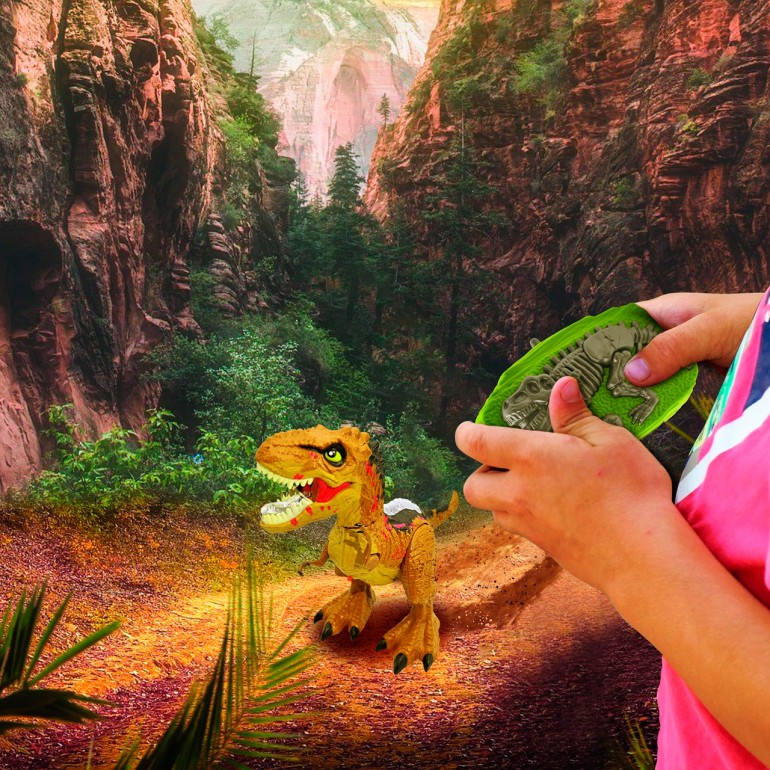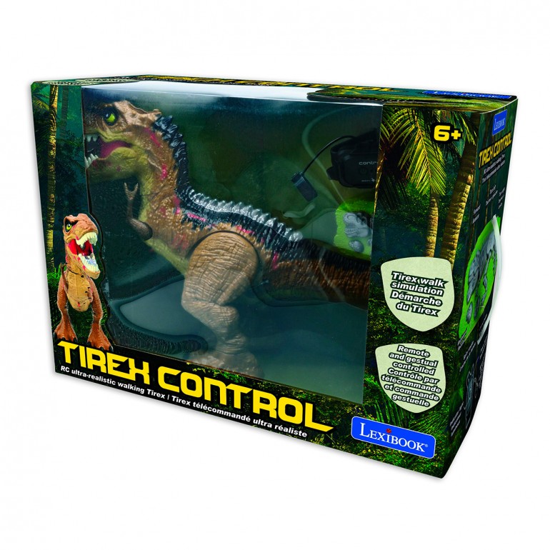 Discover the radio-controlled Tyrannosaurus Rex dinosaur! It is easy to control with the remote control or gesture control. With articulated movements and amazing roars, this tyrannosaurus is more real than life!