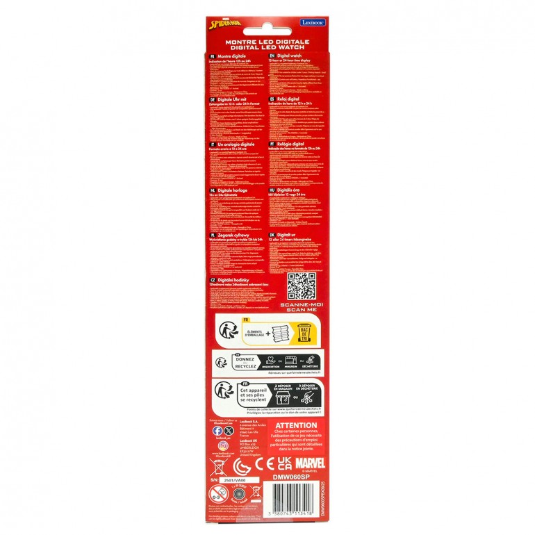 Discover the Spider-Man LED watch, perfect for never missing a moment! With its fascinating design inspired by the exciting world of the superhero, this watch will surprise all young adventurers. Kids will love being able to see the time at a glance.