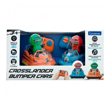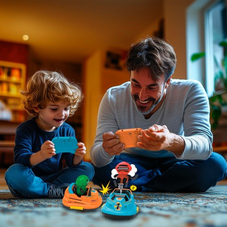 Race wildly with this set of two remote-controlled bumper cars and their removable characters! Enjoy an exciting play experience with realistic sounds and flashing lights on each car.