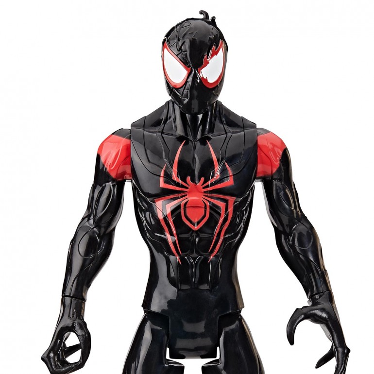 This oversized Miles Morales figure features Venom-inspired design and details. It features basic joints on his arms, legs and neck so that children can pose him in different poses.