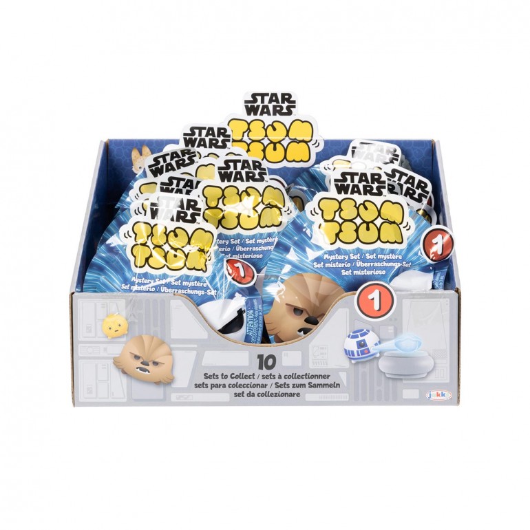 Join the galactic battles with these collectible STAR WARS Tsum Tsum figures! Series 1 is a collection of 10 mystery sets from 5 of your favorite STAR WARS movies and shows: STAR WARS: A NEW HOPE, STAR WARS: AHSOKA and STAR WARS: THE MANDALORIAN. Figures include Darth Vader, Princess Leia, Chewbacca, R2D2, Din Djarin, Ahsoka and many more! Enjoy acting out your favorite STAR WARS scenes or stacking them for display.