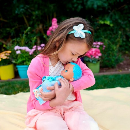 Bring joy home with this My Garden Baby My First Butterfly Baby doll. Born with a sweet scent of jasmine, fantastic hair and plush wings that wrap around like blankets. With her soft tummy and 23 cm tall, she´s great to snuggle with or take along to play. "Comfort" My Garden Baby doll with the drawstring pacifier. Plus, the packing box folds into a cradle where this baby butterfly can flutter in sweet garden dreams.