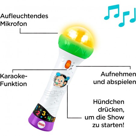 The fun of learning comes alive when kids sing along with Perrito and record their own songs! Make your little one´s dreams of becoming a star come true with the Fisher-Price Laugh & Learn Sing & Learn Mic. Whether it´s singing along, recording your own voice or accompanying Perrito with fun learning songs, your child will love enjoying music with this cool microphone - it´s like karaoke with learning included!