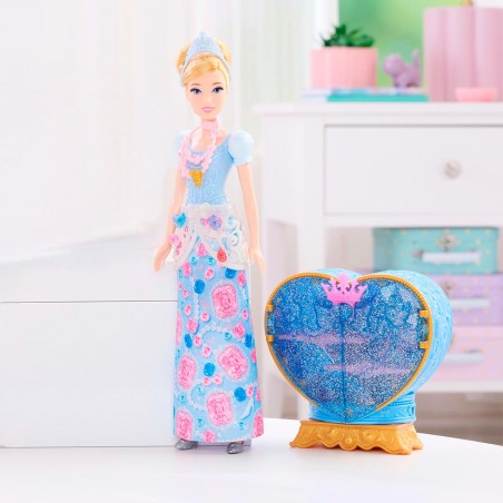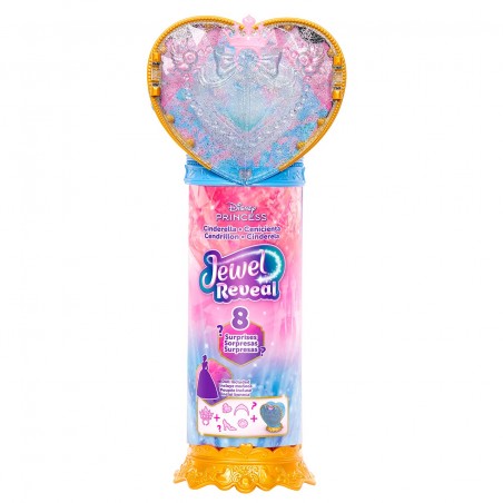 Discover the enchanted world of Disney Princesses with Jewel Reveal´s Cinderella doll and surprise accessories. The fun begins the moment girls and boys open the heart-shaped jewel at the top of the box, which reveals the beautiful Cinderella fashion doll and surprise accessories inspired by the popular Disney movie. Girls and boys can adorn the doll with jewelry and then attach the heart to the base to create a jewelry box to store accessories - perfect for Disney fans who love to play fashion-related games and have fun telling stories!