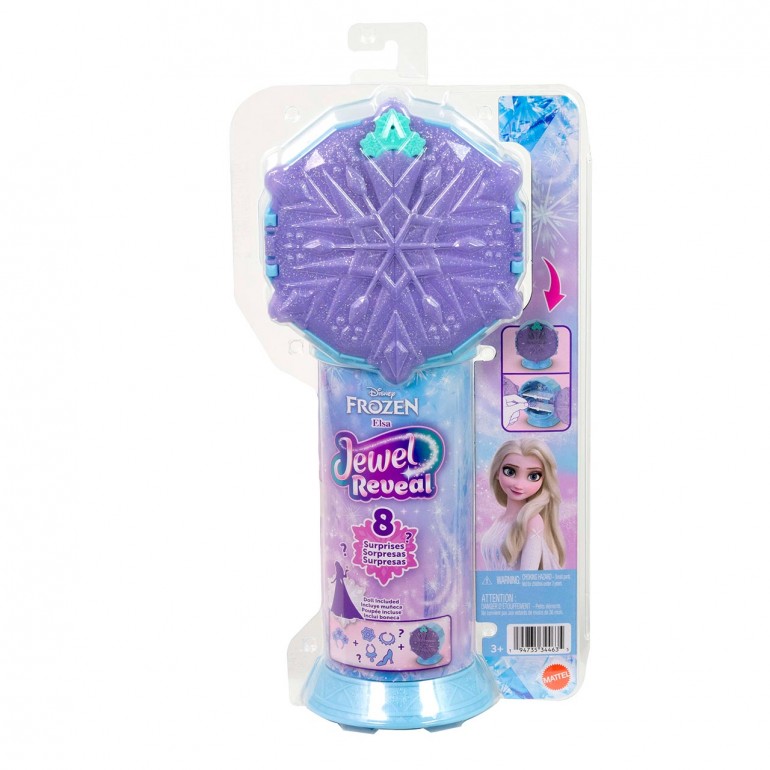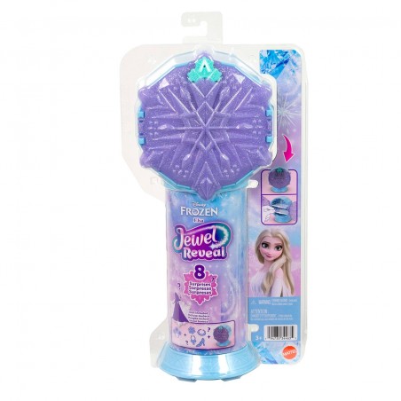 Discover the enchanted world of Disney Frozen with the Elsa doll and surprise accessories from Jewel Reveal. The fun begins the moment girls and boys open the snowflake-shaped jewel at the top of the box, which reveals the beautiful Elsa fashion doll and surprise accessories inspired by the popular Disney movie Frozen 2. Girls and boys can adorn the doll with jewelry and then attach the top of the snowflake to the base to create a jewelry box to store accessories in. Perfect for Disney fans who love playing fashion-related games and having fun telling stories!