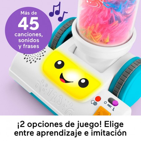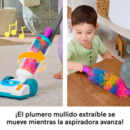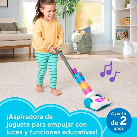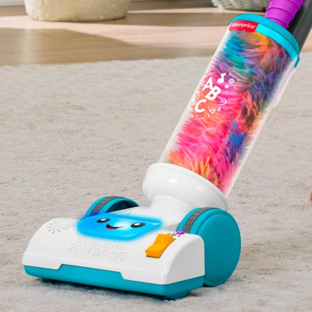 This Fisher-Price Laugh & Learn 2-in-1 electronic vacuum cleaner doubles the fun and learning as kids enjoy pushing the vacuum and cleaning with the duster. The vacuum cleaner is the perfect size for pushing it across the floor and exploring. It also includes a fun spinning action, colorful lights and two play modes with more than 45 songs, sounds and phrases. Kids can play clean up while discovering the alphabet, colors and more. Use the world button to select a language: Spanish, English, Italian or Portuguese.