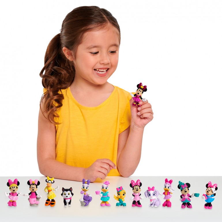 Minnie Mouse capsule figures are part of a series of collectible minifigures inspired by Disney Junior. Each capsule contains a surprise figure with a dynamic design and pose. The collection includes 13 different characters, such as Tea Party Minnie Mouse, Mermaid Daisy Duck and Glitter Minnie Mouse.