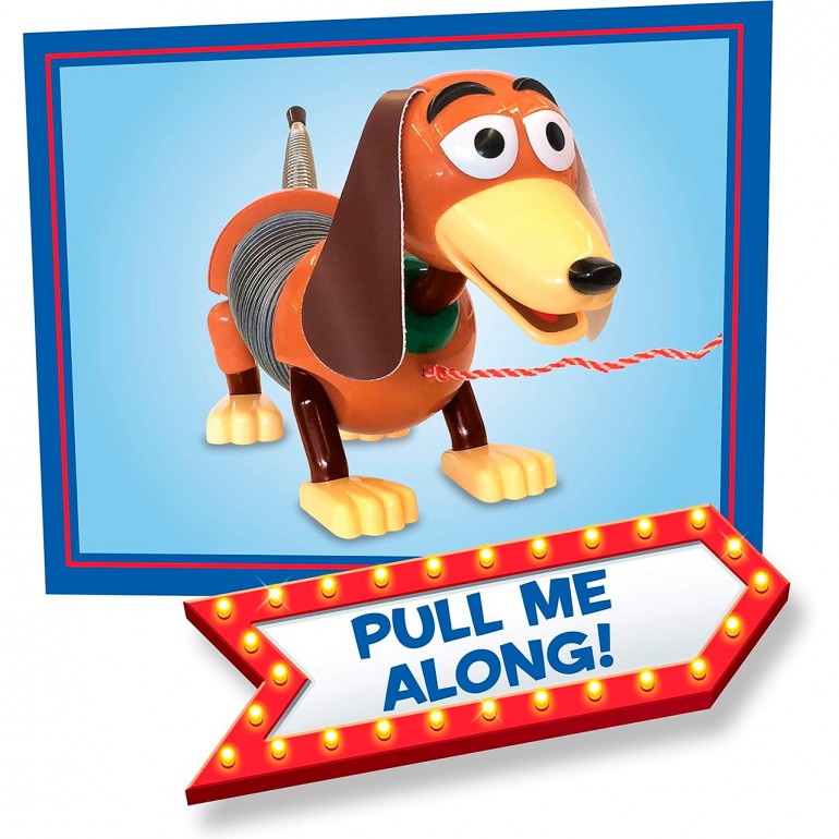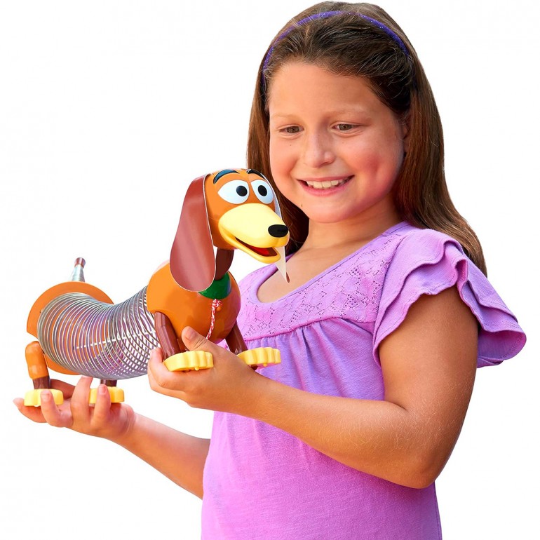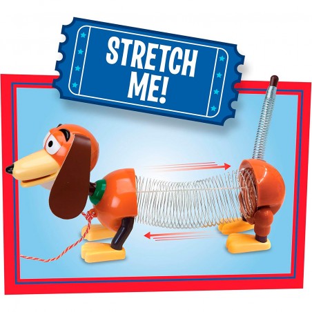 Stretch the fun to the max with Slinky the dog from Disney and Pixar´s Toy Story! Inspired by the classic Slinky toy and lovable Toy Story character, Slinky the dog features a springy body, floppy ears and a green collar. Pull him by the attached leash and watch him stretch and shrink as he follows you around. This classic toy stands 17.8 cm tall and stretches from 12.7 to 35.6 cm.