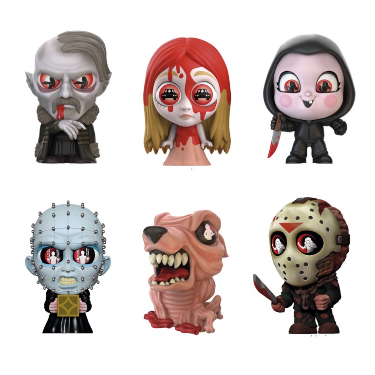They are creepy. They´re collectible. They´re sweeping your shelves. They come straight from the crypt of cinematic nightmares. They´re small, but they´re scary as hell. Open one of these mysterious collectible packs to reveal a terrifyingly detailed 7.5 cm sculpted figure with creepy glowing eyes that recreates a scene from a horror movie.