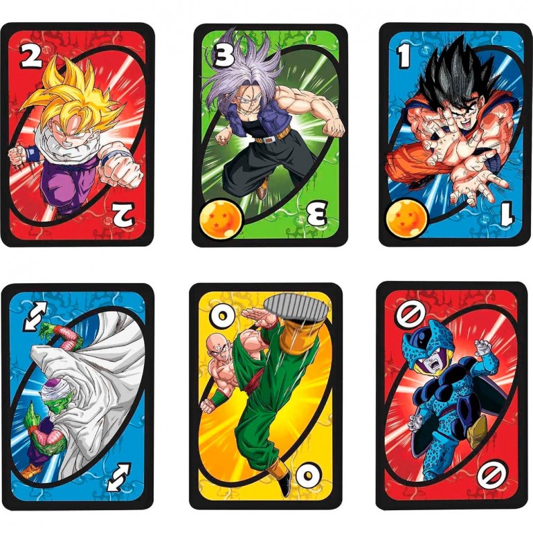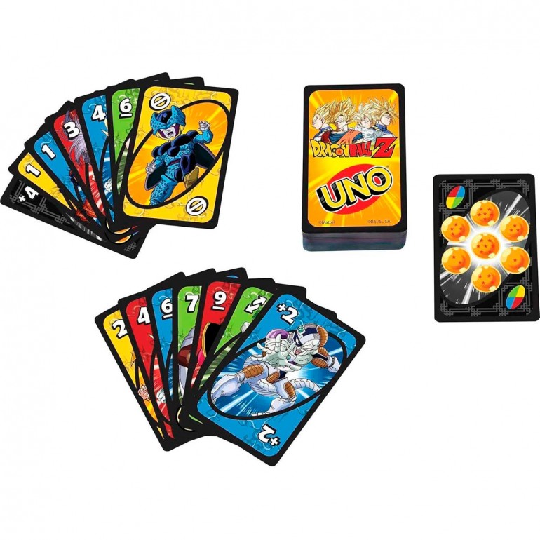 It´s the classic UNO card game everyone loves, with graphics designed for Dragon Ball Z fans! Each card features Dragon Ball Z graphics that provide a new twist on the story that accompanies the card each time you play. Just like in the classic UNO game, players must sort cards by color or number in an attempt to clear their hand. Includes an exclusive Wild Shenron wish card. Like other action cards, it can instantly change the course of the game!