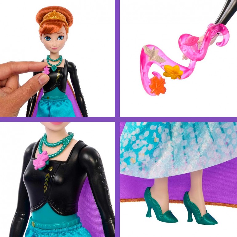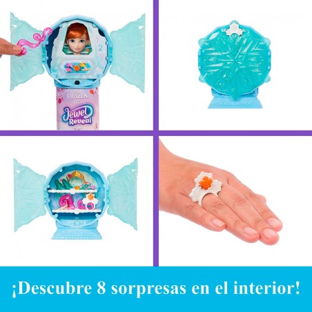 Discover the enchanted world of Disney Frozen with the Anna doll and surprise accessories from Jewel Reveal. The fun begins the moment girls and boys open the snowflake-shaped jewel at the top of the box, which reveals the beautiful Anna fashion doll and surprise accessories inspired by the popular Disney movie Frozen 2. Girls and boys can adorn the doll with jewelry and then attach the snowflake to the base to create a jewelry box to store accessories. Perfect for Disney fans who love to play fashion-related games and have fun telling stories!