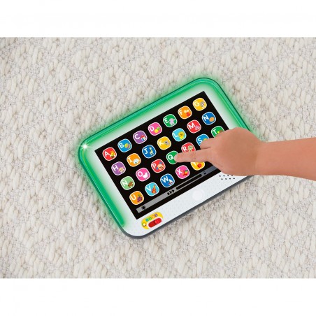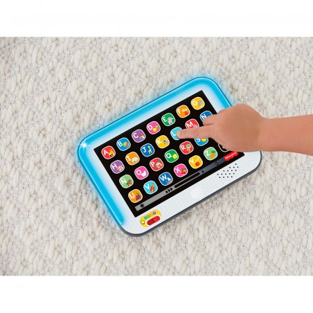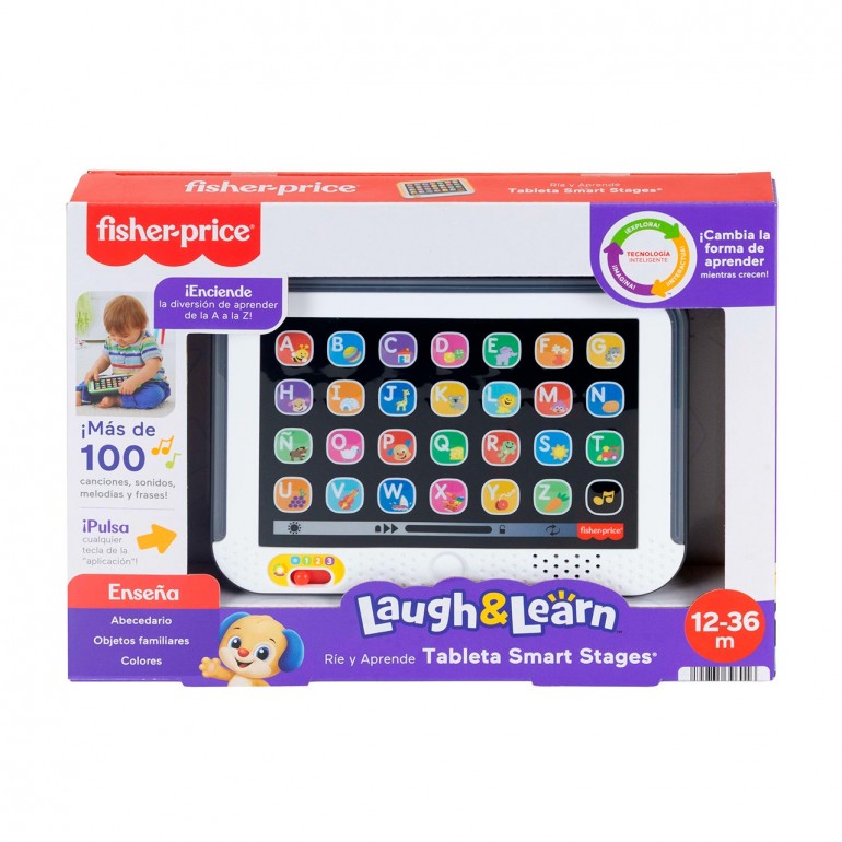The Laugh & Learn Smart Stages tablet from Fisher-Price is an interactive toy tablet for little ones. This electronic learning toy has 28 "app" buttons that can be pressed to activate multi-colored lights, as well as over 100 songs, sounds and phrases to teach letters, first words, animals and more. Smart Stages´ 3 levels allow you to adapt the learning game as your baby grows.
