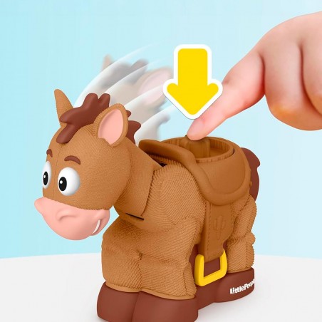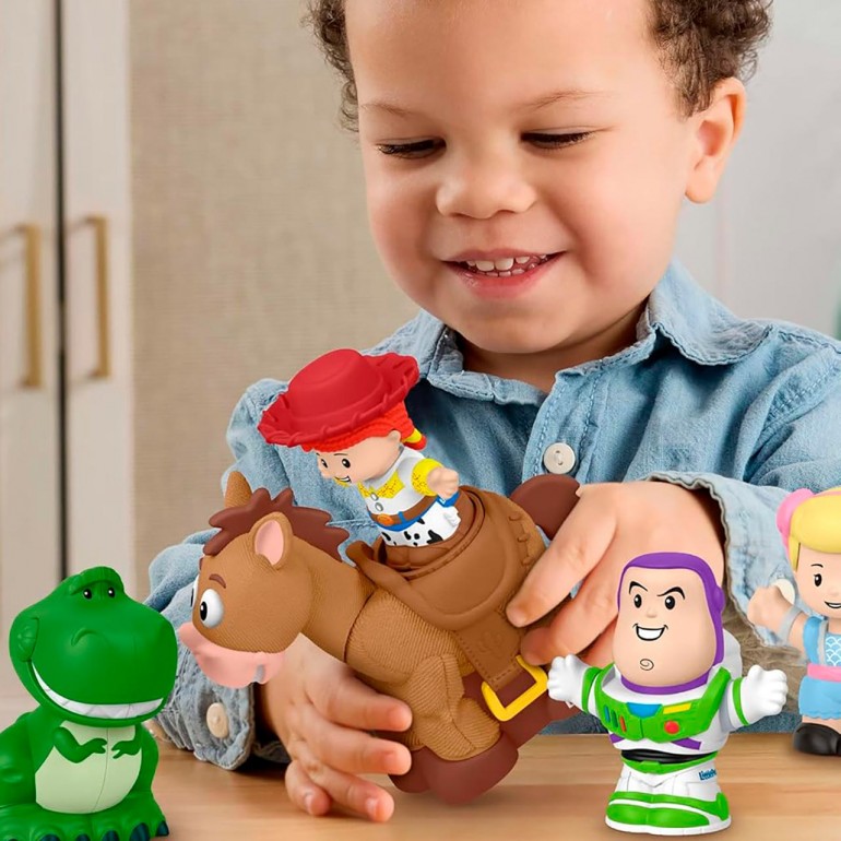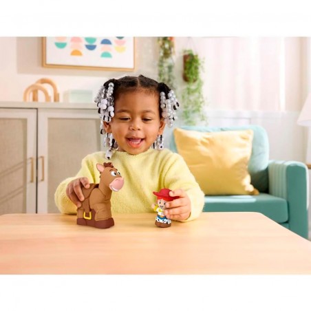 Kids can enjoy exciting pretend play with Disney and Pixar´s Toy Story characters with this Little People Pellet and Jessie figure set from Fisher-Price. Inspired by the movies, this set includes Jessie and her trusty horse, Perdigon, with an ideal size for small hands and fun head movements - kids can place the Jessie figure in the saddle for realistic horseback riding pretend play!