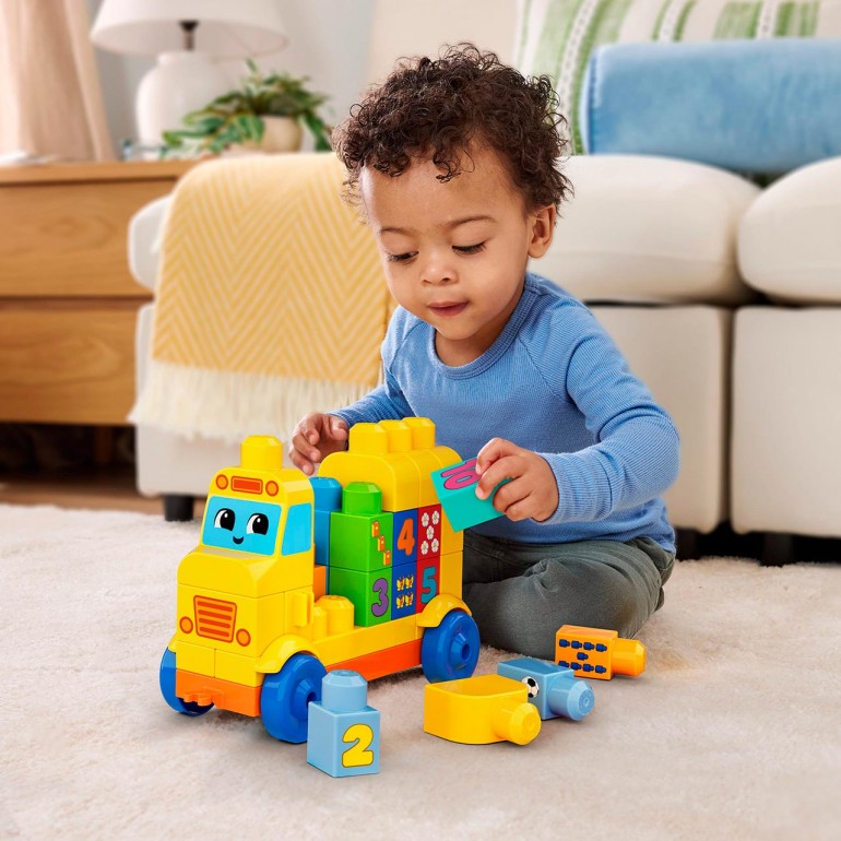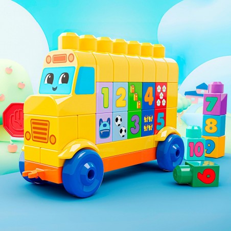 Teach your kids to stack and count with the MEGA BLOKS building and counting bus. This preschool building toy comes with 45 pieces, including a movable wheeled base, a movable stop sign and large blocks with numbers 1-10 and decorations. Little builders can learn to count by stacking and matching the numbers to the decorated blocks - combine with other MEGA BLOKS sets to extend the fun!