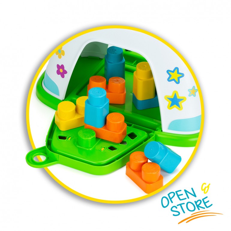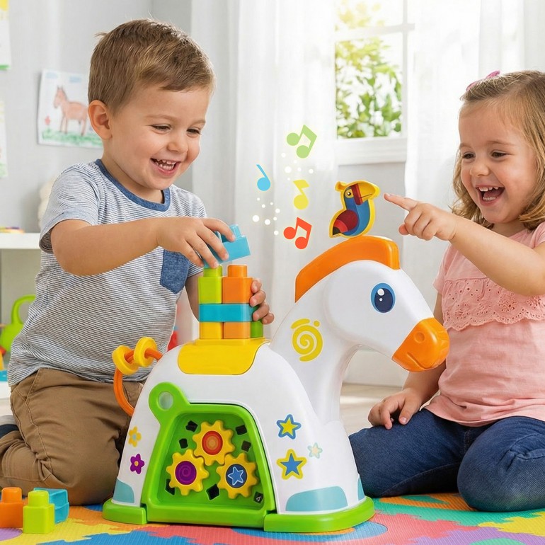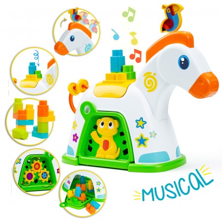 Activity Zebra with sounds, gears and 15 Molto blocks. Invites them to play, create and improve coordination while discovering buttons and fun movements.