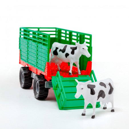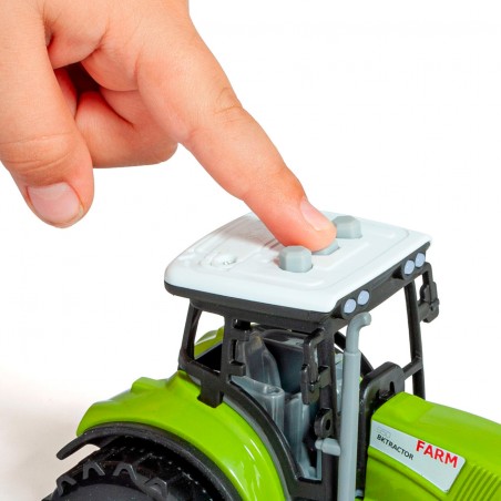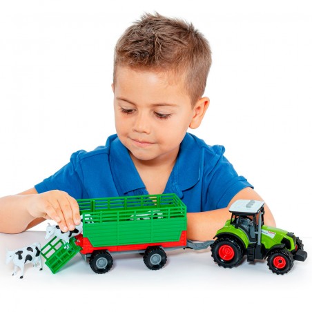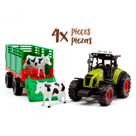 Tractor with engine and sounds. Includes LED lights and 3 buttons with sounds: engine running, horn and reverse. Comes with a tractor, two animals and a trailer - guaranteed fun for little farmers!