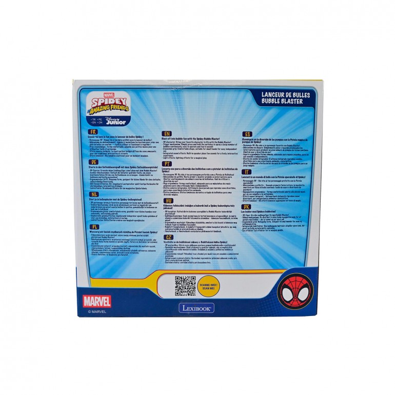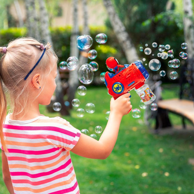 Bubble gun with a 3D figure of your favorite character for extra fun. Simply press and hold the switches to continuously shoot bubbles - easy to use and fun to watch! Cool Spidey sounds for an immersive experience. Bright LED lights for magical play.